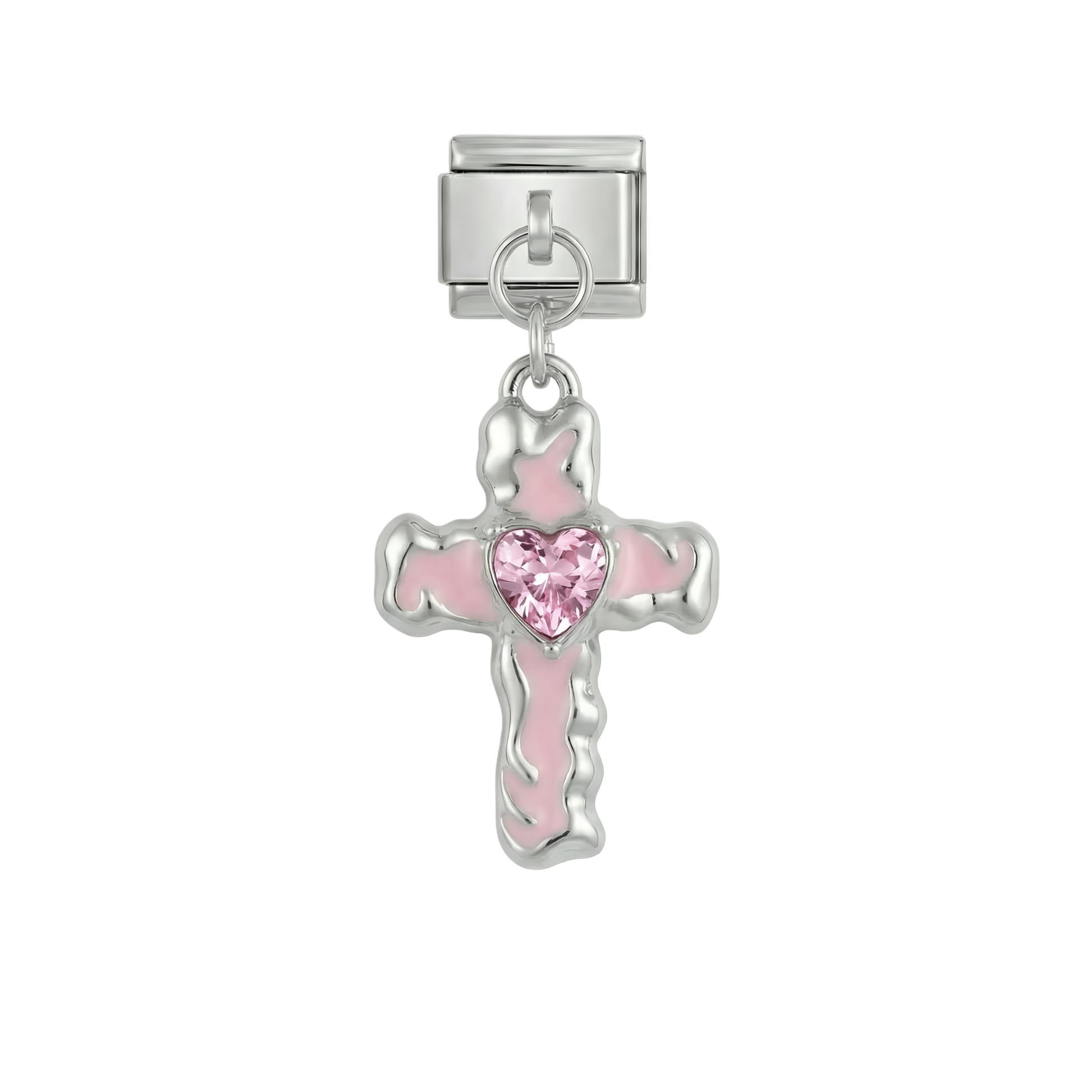 Croix Rose avec Coeur, sur Argent